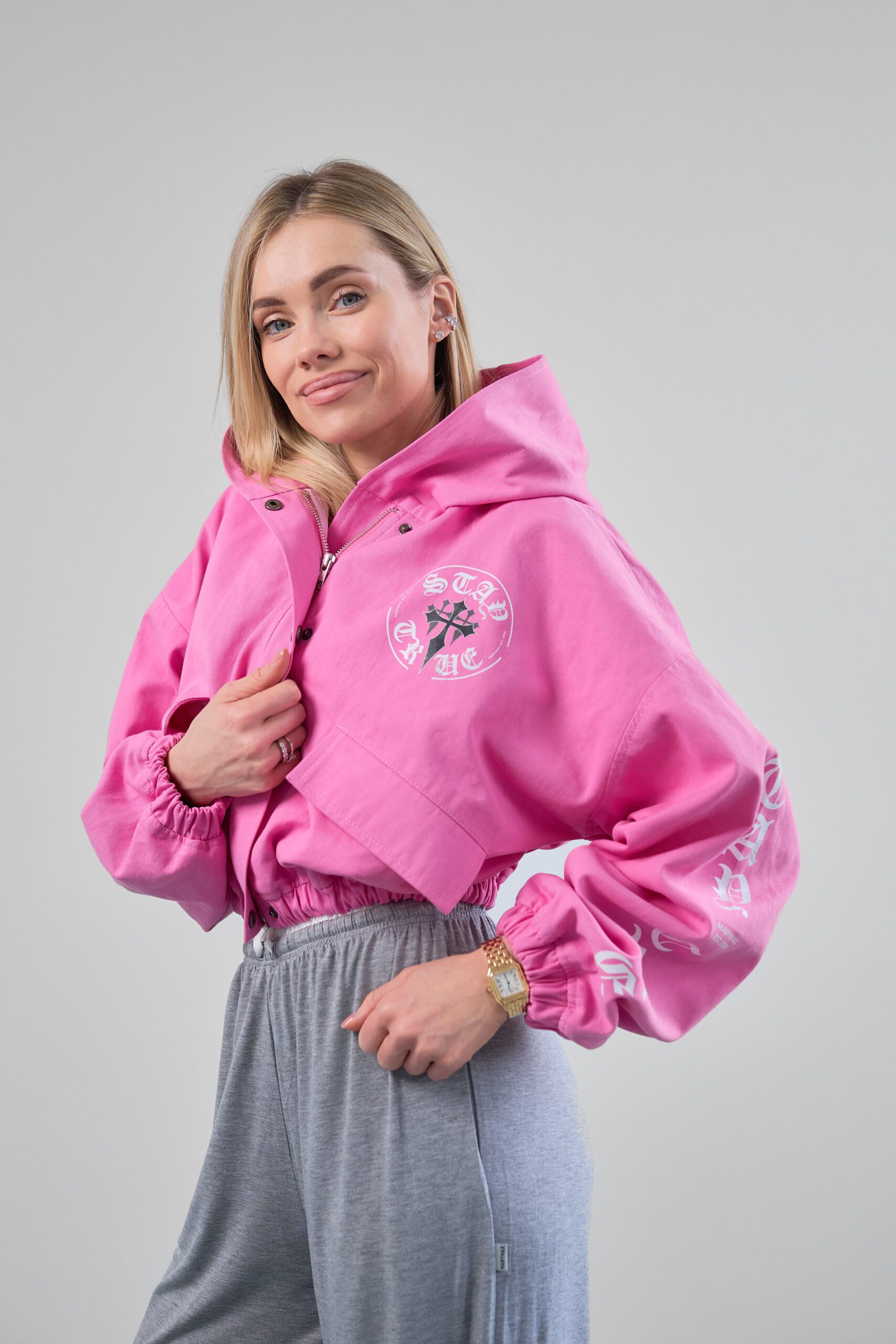 Капюшон з м’якою підкладкою, дві накладні кишені на грудях і прихована застібка на кнопках. Універсальний колір дозволяє легко поєднувати бомбер з різними предметами гардеробу.