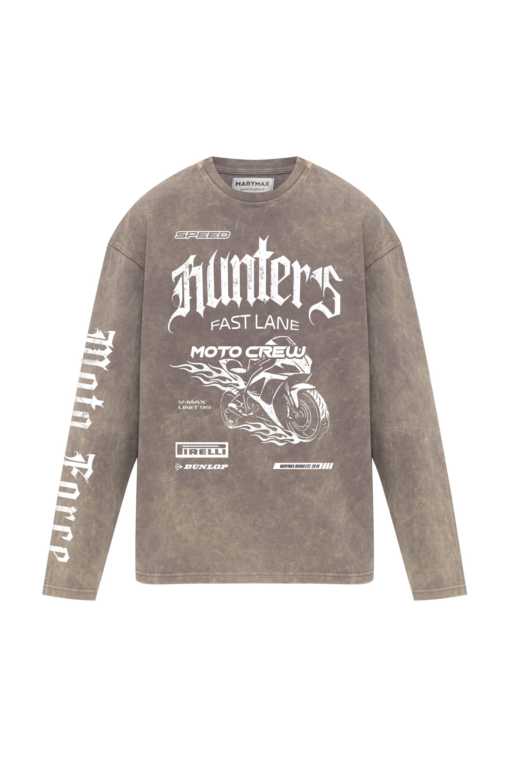 Oversized long-sleeved shirt with a print is a stylish and comfortable item that is perfect for any season. Made of boiled cotton.