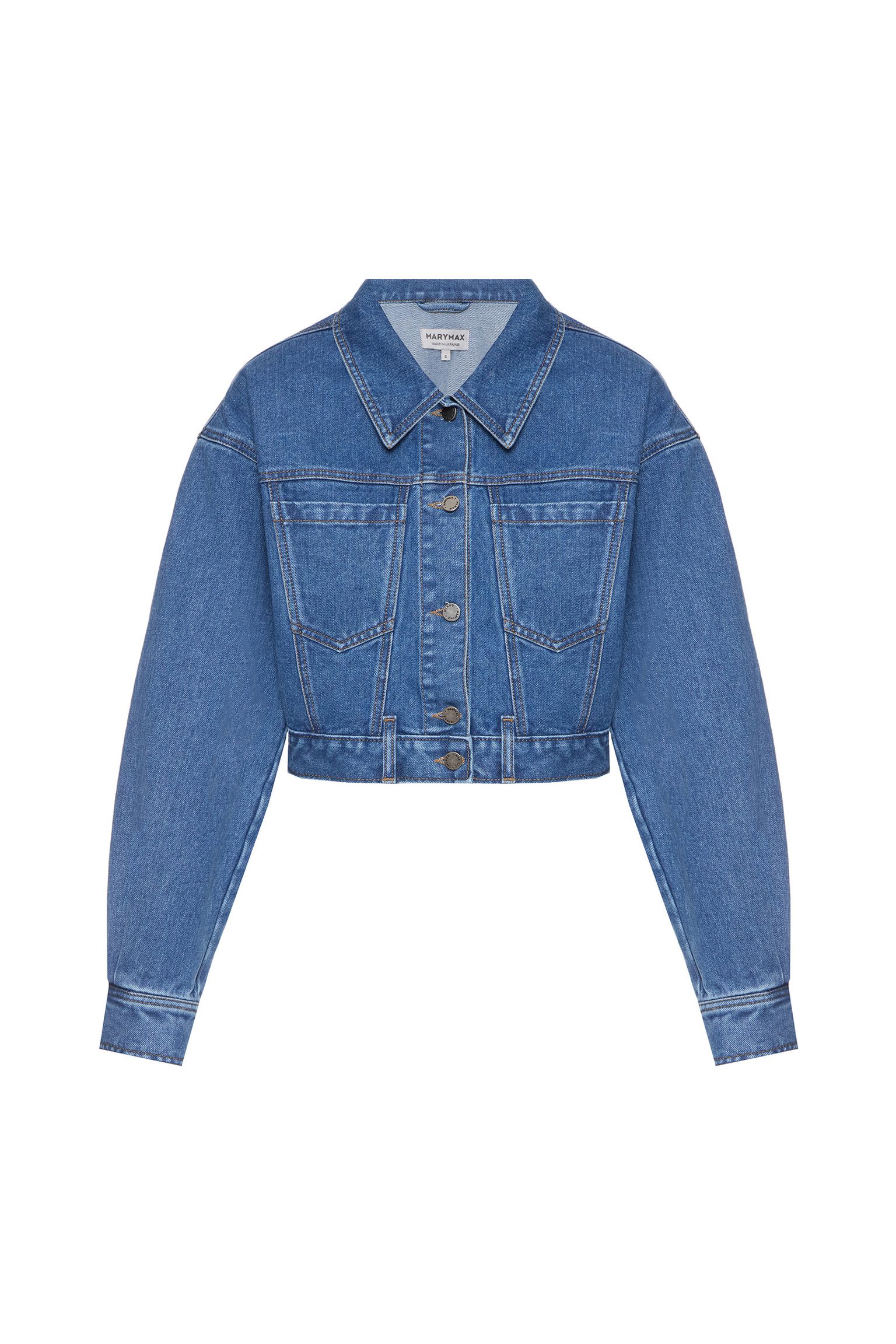 Куртка укороченая свободного кроя, выполнена из денима.