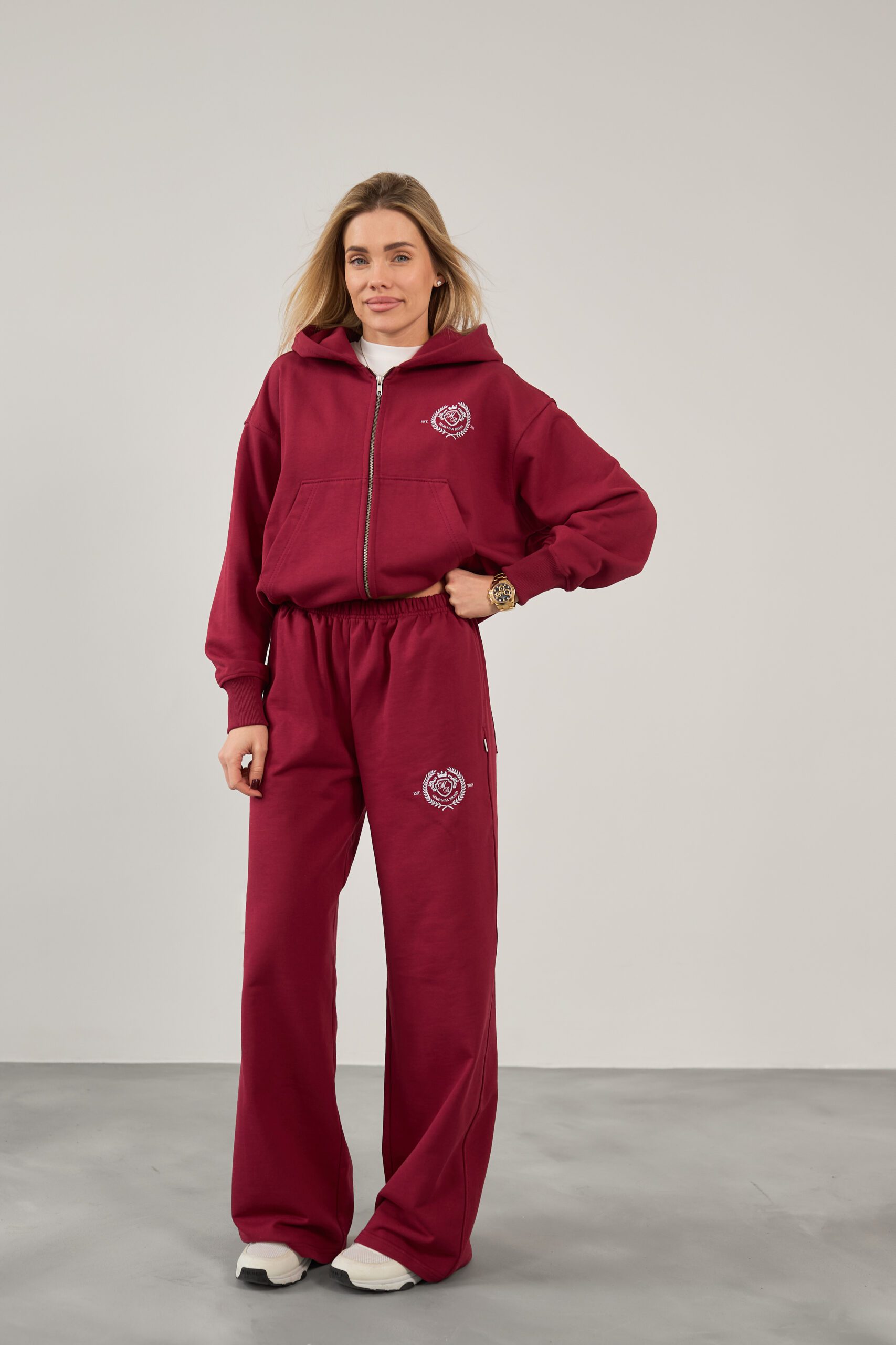 – Жіноча кофта на блискавці, з подвійним капюшоном, прикрашена принтом.