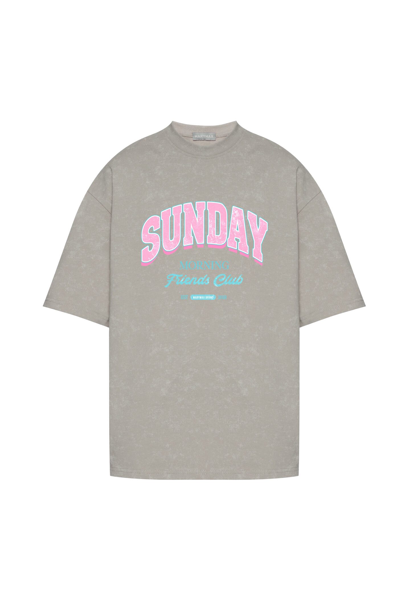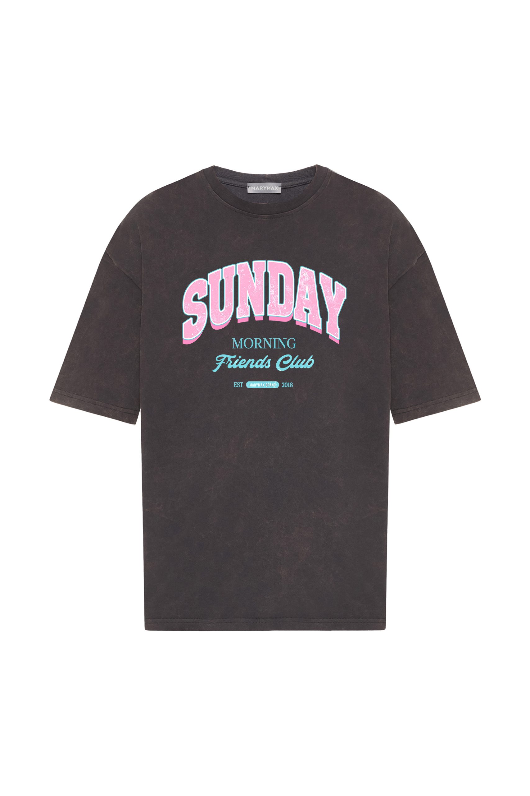 Футболка oversize виконана з вивареної тканини. З контрастним принтом на грудях. Має вільний крій та спущену лінію плеча. Чудово поєднується з джинсами, брюками та спідницею.