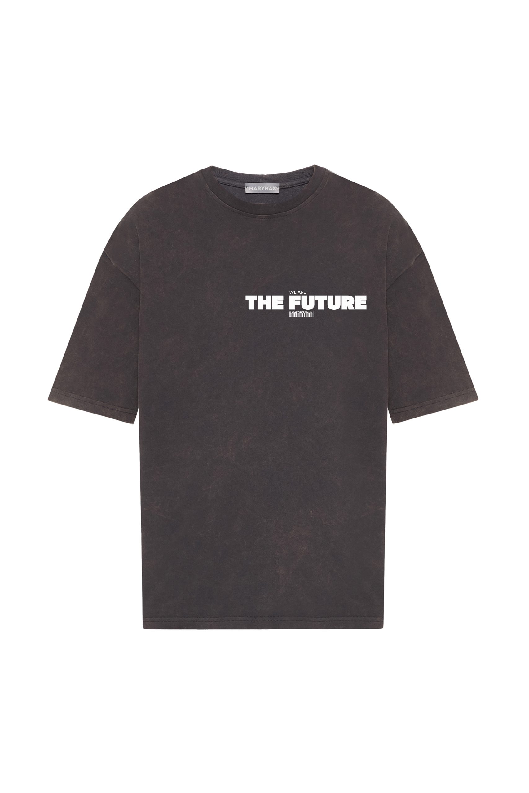 Футболка oversize виконана з вивареної тканини. З контрастним принтом. Має вільний крій та спущену лінію плеча. Чудово поєднується з джинсами, брюками та спідницею.